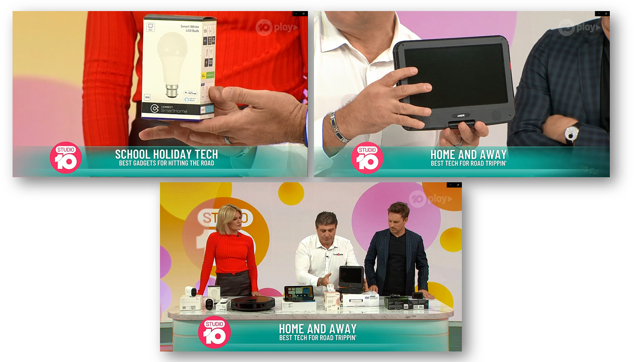 The Studio 10 national broadcast included the Connect Smart Home White LED light & the Laser Portable DVD player.