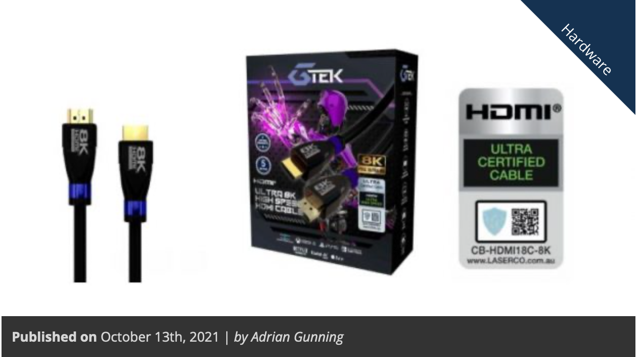 Australian-owned consumer electronics company LASER, has today announced that its Gtek-branded range of Ultra Certified HDMI cables will now be available in three and five metres, the first time HDMI 2.1 cables have been available at such lengths in Australia.