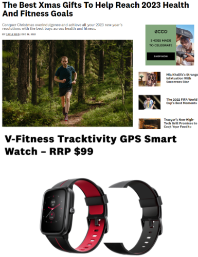 This article in Men's Health proposes a list of best buys to help achieve or improve health and fitness goals for 2023. The V-Fitness Tracktivity GPS Smart Watch makes it on this list as a watch that provides all the benefits of top-of-the line smartwatches at an affordable price.