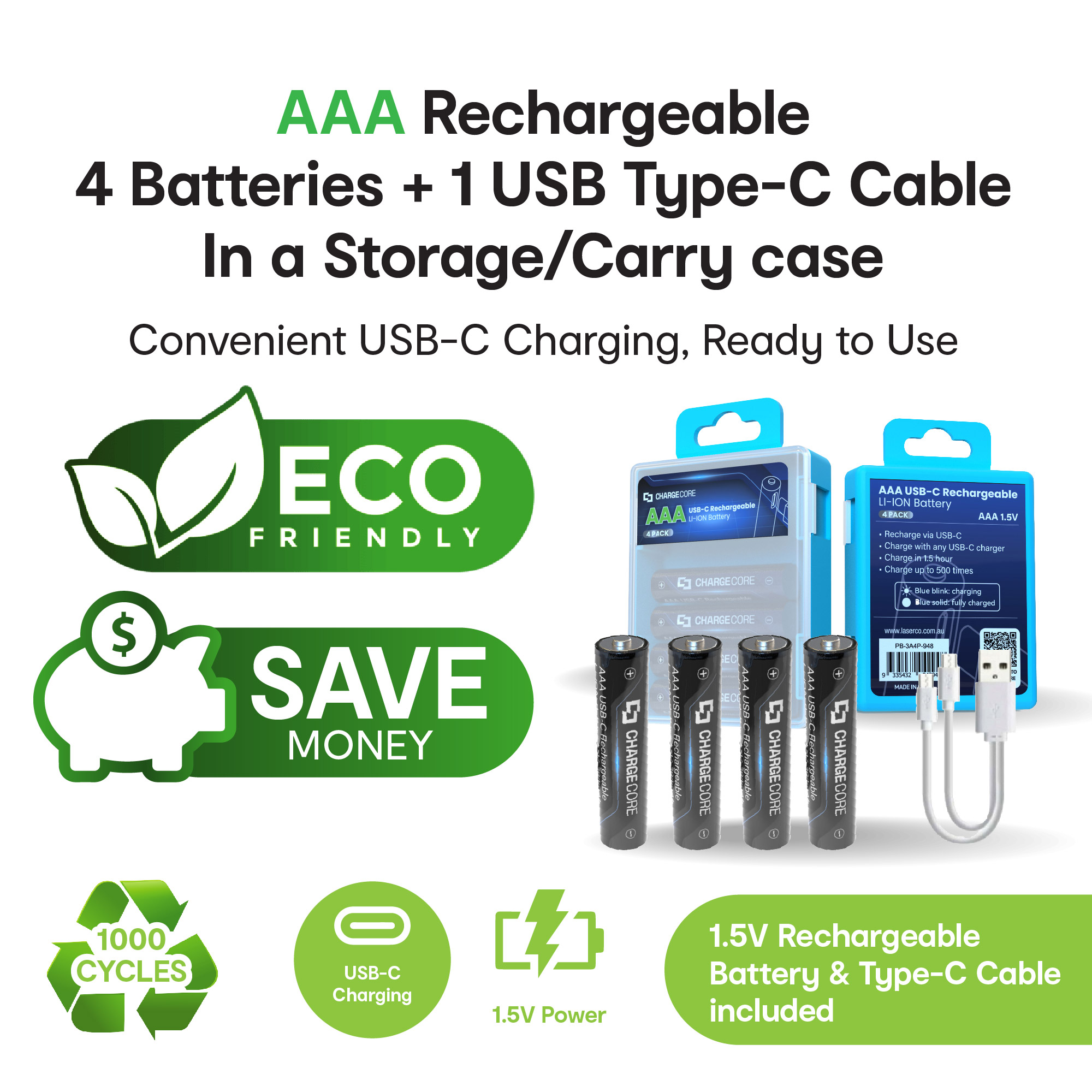 Designed to fit common household gadgets, these rechargeable lithium-ion batteries are a sustainable alternative to single-use alkaline batteries, which contribute to over 6,000 tonnes of waste in Australia each year.